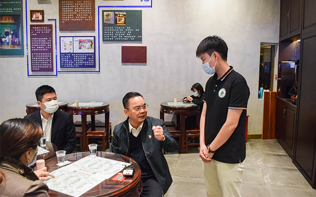 進(jìn)店后分桌而坐,主動(dòng)摘下口罩帶頭進(jìn)行堂食消費(fèi),品嘗雙皮奶、姜撞奶等特色美食,以實(shí)際行動(dòng)支持餐飲行業(yè)經(jīng)營發(fā)展,鼓勵(lì)市民放心消費(fèi)。還積極詢問商家復(fù)工經(jīng)營情況,并現(xiàn)場(chǎng)協(xié)調(diào)解決。